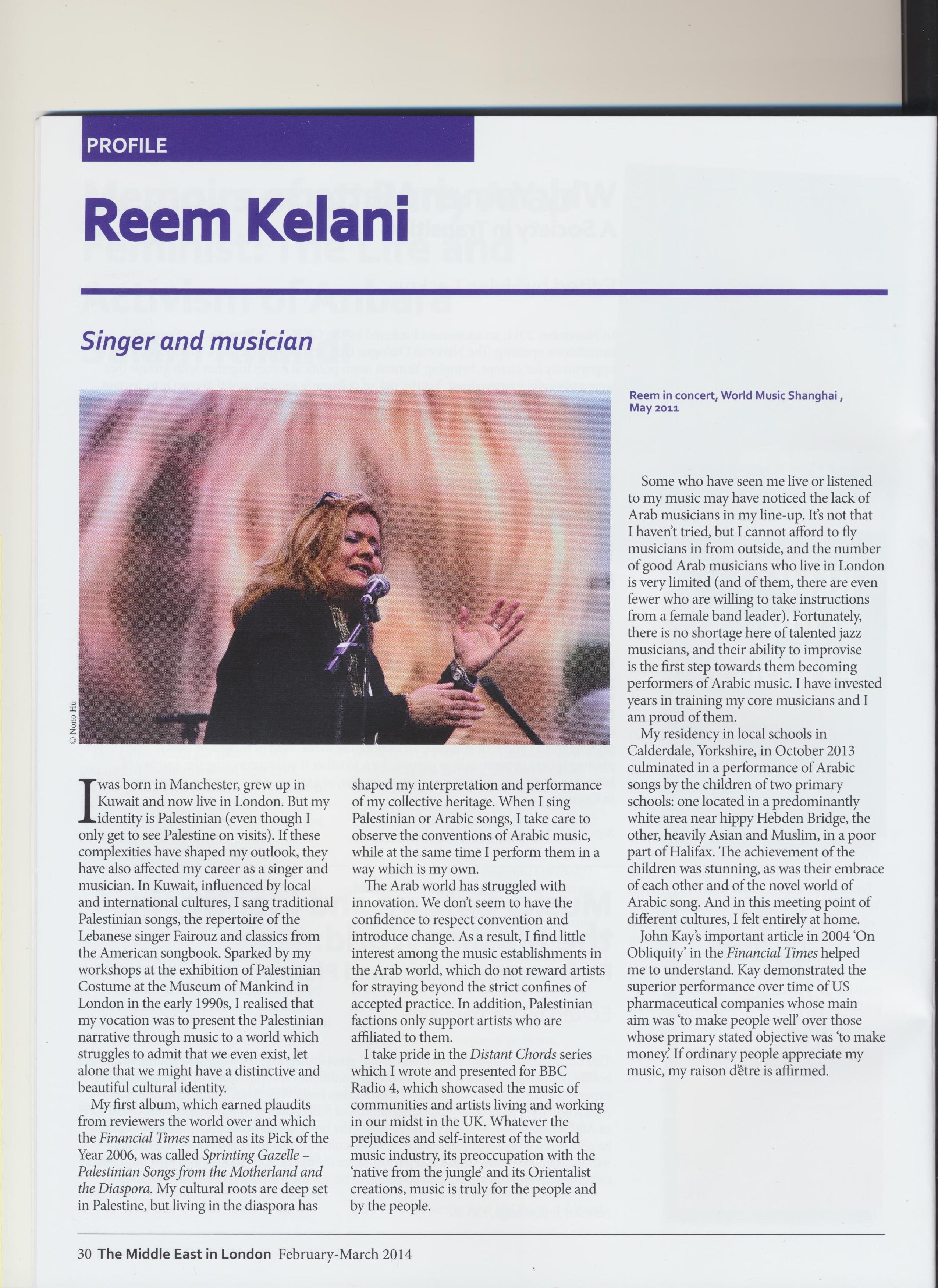 'I realised that my vocation was to present the Palestinian narrative through music to a world which struggles to admit that we even exist, let alone that we might have a distinctive and beautiful cultural identity.'The Middle East in London, February - March 2014