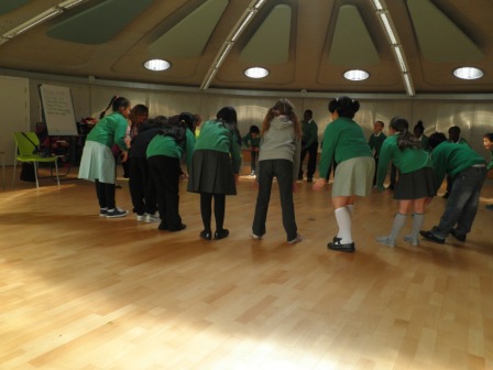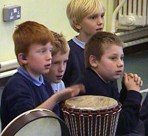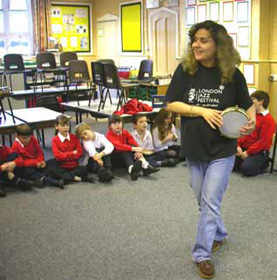 Reem teaching beat and off-beat percussion, with a wonderful display by the children of Surrey Square School of a percussion composition which they had themselves developed beforehand with their excellent teacher Gareth Hackney.