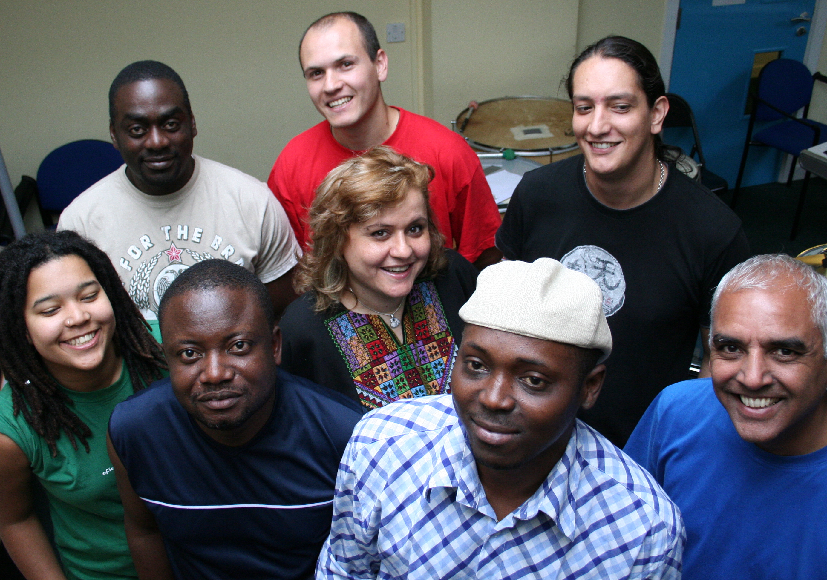 ![]() Reem with members of the Beating Wing Orchestra, Manchester International Festival. Photographed by Lynn Irving Lynn Irving, June 2007 |