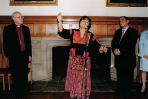 ![]() 1998, Lambeth Palace, London Reem with the Archbishop of Canterbury & Palestinian General Delegate to the UK Afif Safieh |