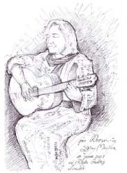 ![]() January 2001, Kufa Gallery, Westbourne Grove, London "An Evening for Jerusalem" Sketch of Reem performing on the night, drawn and provided by Agim Morina |