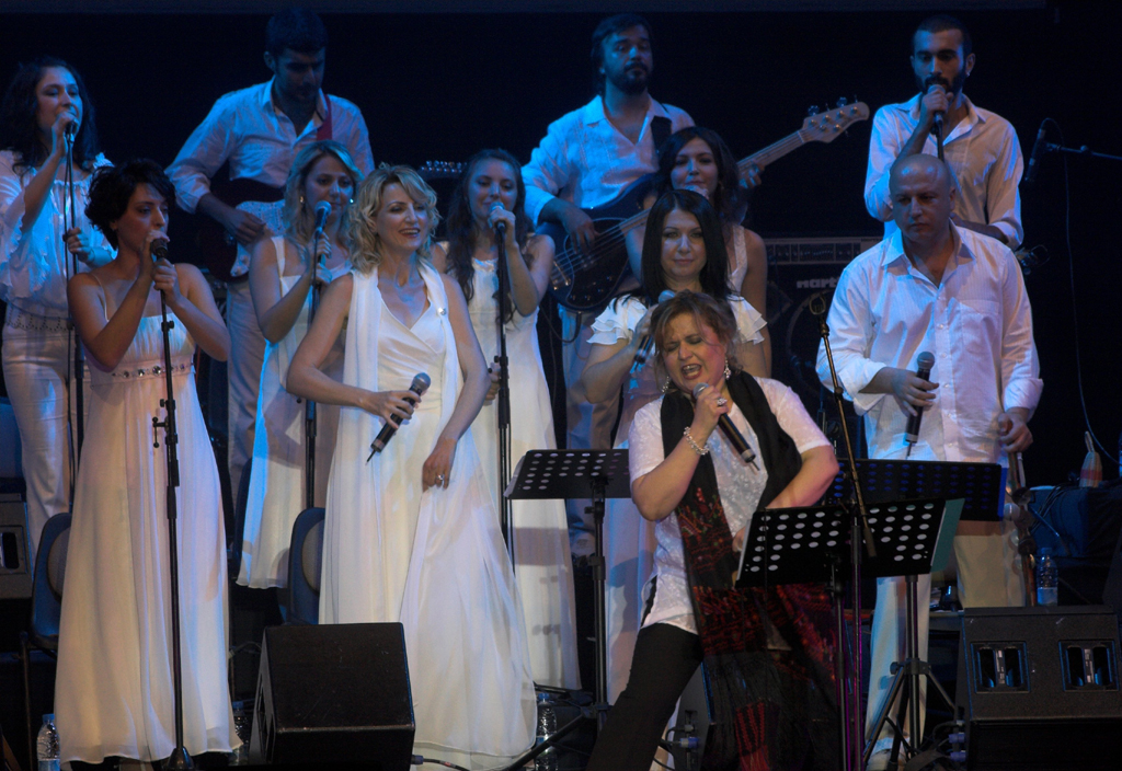 ![]() Reem with Kardes Turkuler and Arto Tunçboyaciyan at the Turkcell Kuruçesme Arena. Photograph courtesy of Kardes Turkuler June 2009 |