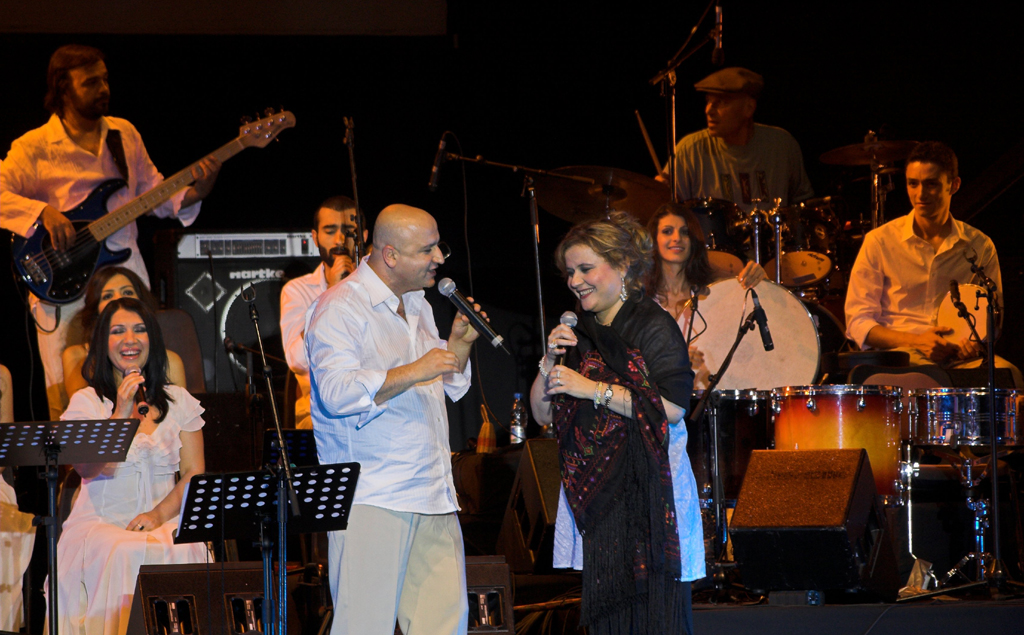 ![]() June 1998, Sidon, Lebanon Performing at the Ma'rouf Saad Centre |